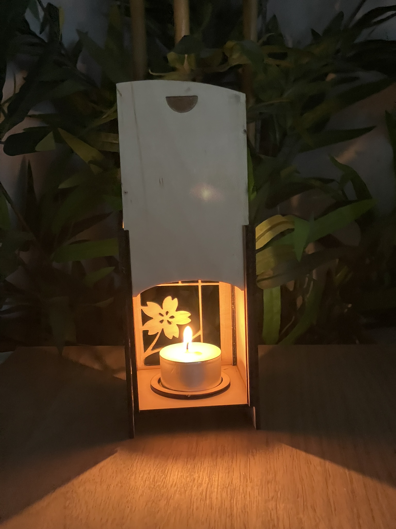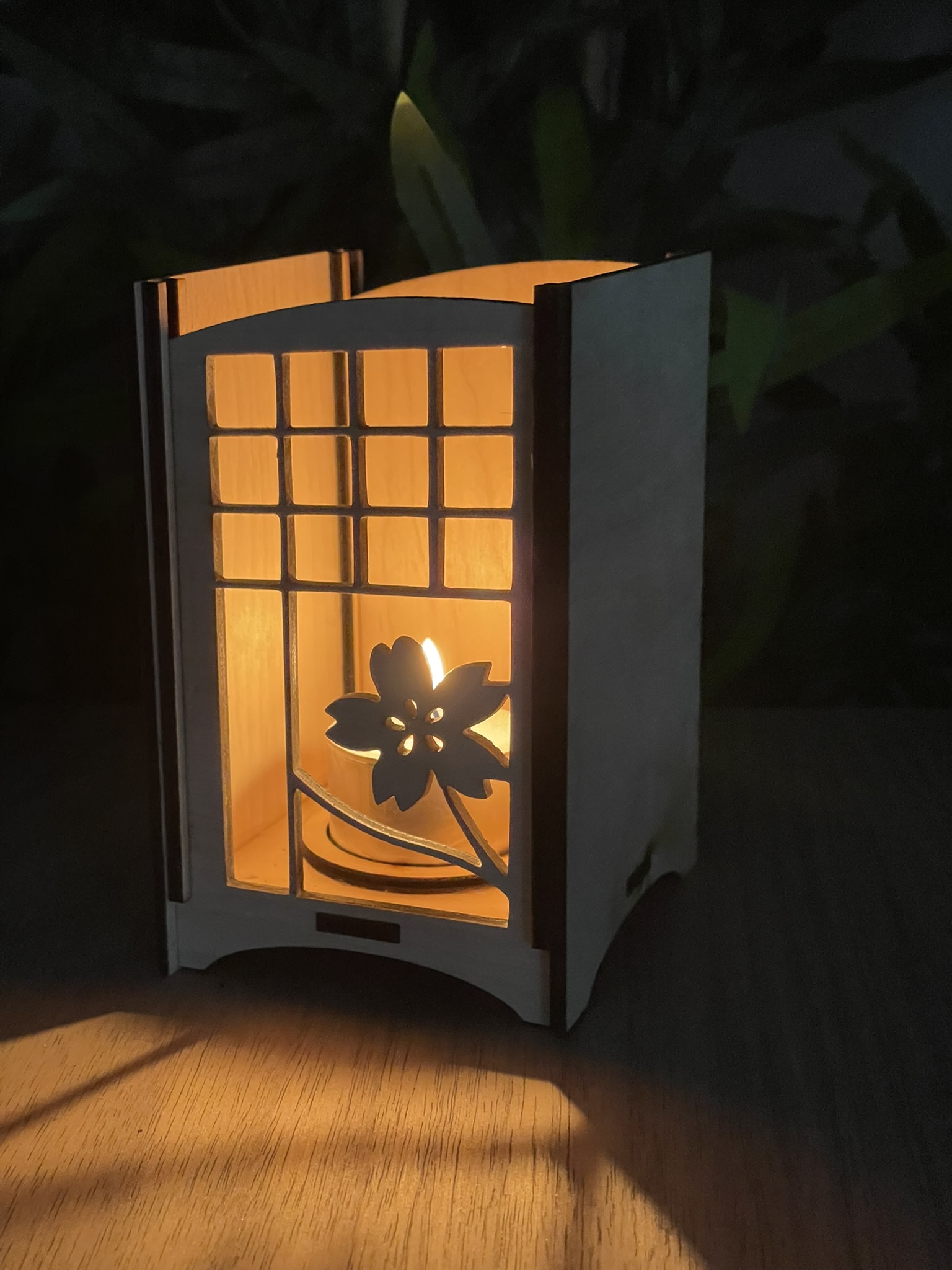 Laissez la douceur du Japon illuminer votre intérieur avec ce photophore en bois, inspiré des lanternes shoji. Son motif sakura découpé au laser et son panneau coulissant en font une pièce aussi élégante que pratique, pour créer une ambiance apaisante et chaleureuse.